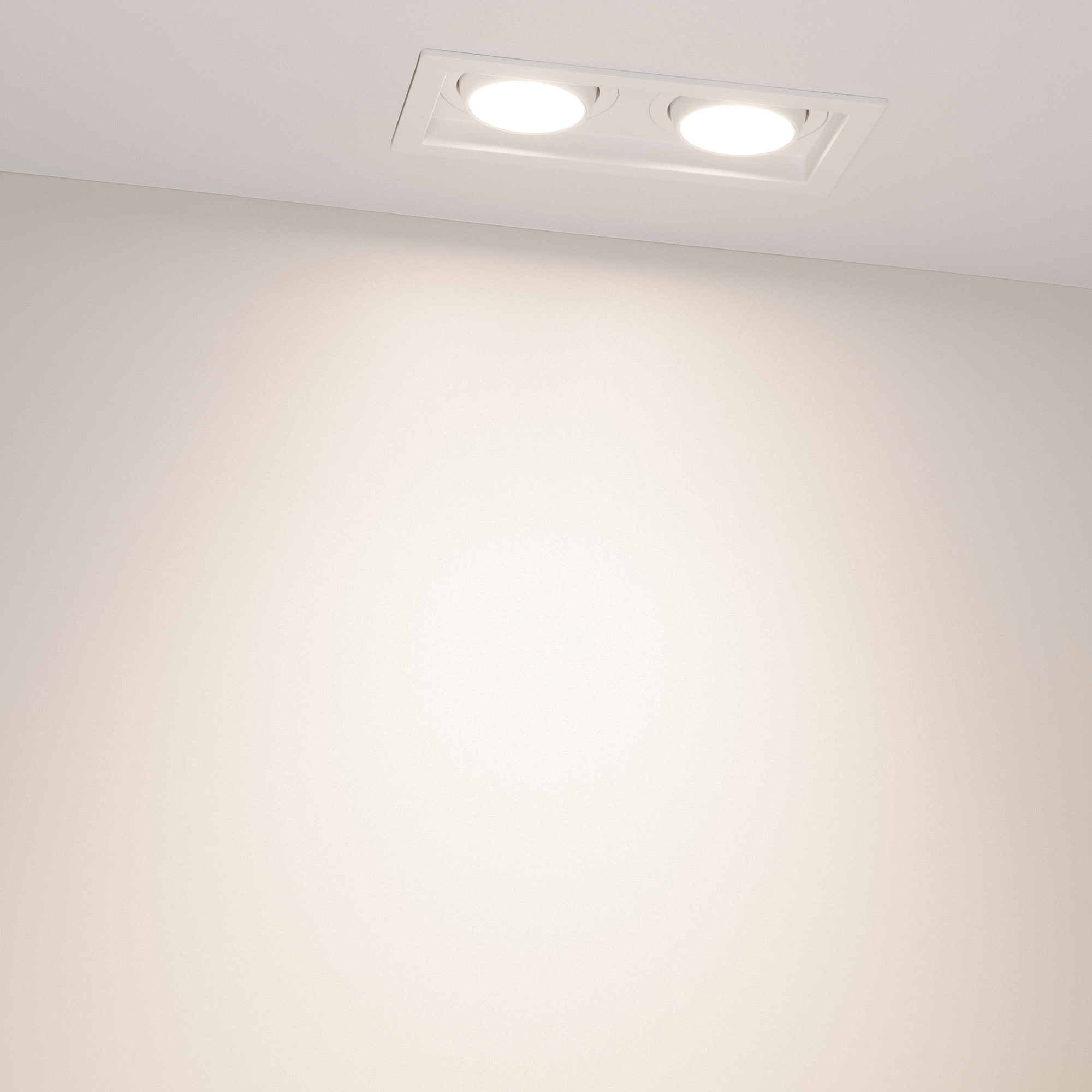 Встраиваемый карданный светильник. Мощность 2х12 Вт, св. поток 2788 лм, 116 лм/Вт, тёплый 4000 K, CRI>92, угол 40°, напряжение питания 230 В. Белый корпус из алюминия, белая вставка, степень защиты IP20. Размер: длина 170 мм, ширина 90 мм, высота 80 мм. Монтаж встраиваемый, установочное отверстие: длина 155 мм, ширина 75 мм. Драйвер 27-40 В, 300 мА, пульсация <2%.